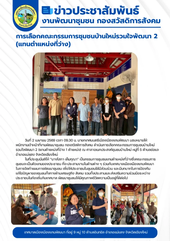 ยินดีต้อนรับเข้าสู่เทศบาลเมืองเมืองแกนพัฒนา หมายเลขโทรศัพท์. 053-857-360 , 053-857387 โทรสาร. 053-857-017 Email: saraban@muangkaen.go.th
